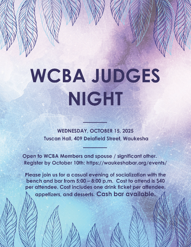 Don’t miss out on Judges’ Night 2025 to be held October 15, 2025, from 5:00-8:00 p.m. at Tuscan Hall. Click HERE to register today!